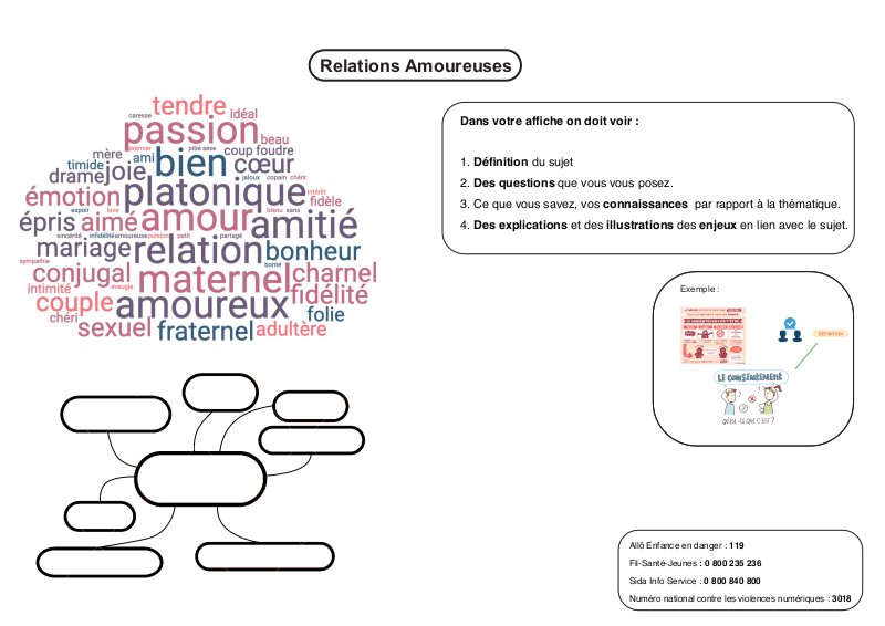 OBJECTIF : Réaliser des affiches sous forme de Sketchnote sur des thématiques abordées lors du Parcours Santé : Éducation à la sexualité. Ce parcours contribue à l'apprentissage d'un comportement responsable, dans le respect de soi et des autres. Il contribue à : - Apporter des informations